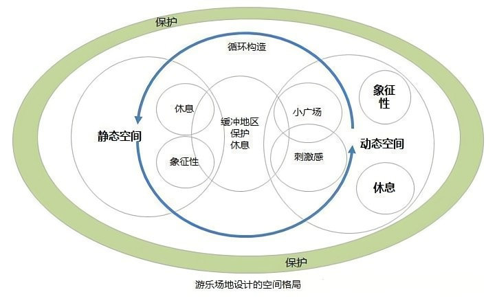 提供多樣游樂活動的空間可以激發兒童的創意能力,因此在游樂場地的構成中,根據不同的年齡、能力以及發展程度,定點游戲領域并配置游樂設施及器具,讓兒童參與到符合自身條件的多樣種類的游戲活動中,考慮兒童求知欲旺盛、好奇心強烈、精力充沛、渴望探索周邊世界等特征,設計應該融合趣味性、參與性、多樣性和知識性為一體,為兒童創造輕松、自然、功能齊全的游樂場所。