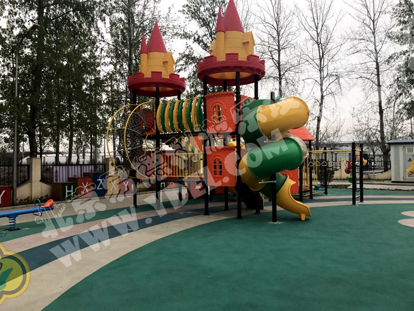 易德利獨家供應城堡系列滑梯,城堡造型頂高檔大氣獨具特色。滑梯塑料部分采用進口工程塑料,色彩鮮艷,常年不褪色;鐵件部分烤漆工藝,適用于戶外不易褪色;繩網采用中心帶鋼絲航海繩,堅固耐用