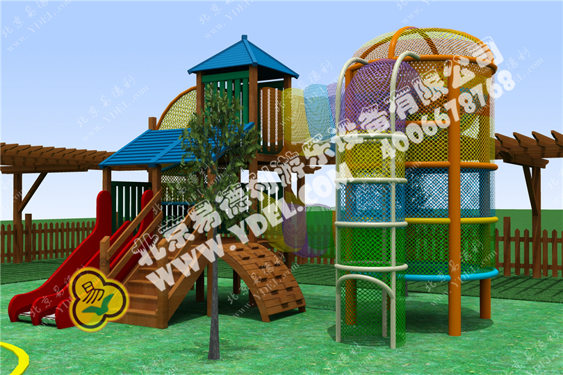 永遠的易德利大招牌城堡大滑梯,一看就高大上,邊角的木質綜合拓展滑梯,鉆筒、蕩橋、軟梯和不銹鋼滑梯、秋千座椅,更有網繩能量塔搭配木質滑梯,全采用進口紅梨木,材質高功能強。