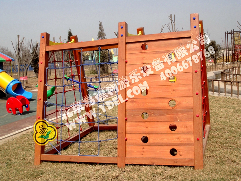 全木質戶外拓展設備,功能齊全,趣味性和鍛煉性并舉。吊環、攀爬,曲環相繞網龍,障礙攀爬,新奇五邊錐形爬網,各種功能拓展項目就在易德利。