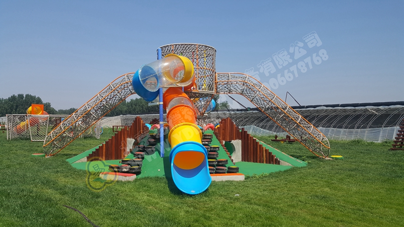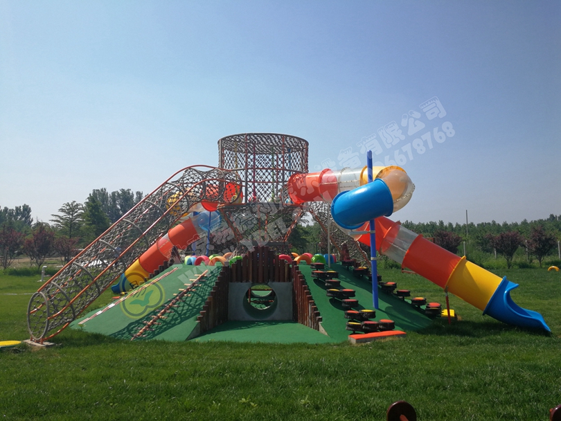 多功能綜合體大型玩具,土堡主體搭配大型繩網攀爬,滑梯、木質拓展、輪胎攀爬、平衡蕩球等等功能一應俱全。讓孩子從臂力、平衡力生理機能得到鍛煉,敢于挑戰土堡項目也是對孩子勇氣膽識的磨煉。