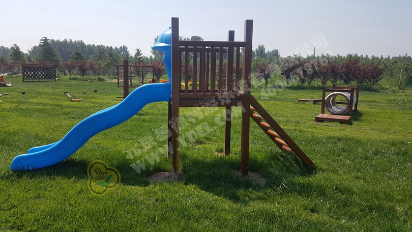 木質拓展組合,進口紅梨木原料,多重加工處理,色彩大氣,防干裂、防潮性能強,強效抗擊惡劣戶外氣候,符合親近自然的主題要求。