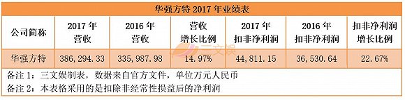 2017 年度,華強方特實現營業收入 386,294.33 萬元,較去年同期增長了 14.97%;扣除非經常性損益后的凈利潤為44,811.15萬元,同比增長了22.67%。此外,據年報顯示,2017年公司依據國家相關政策享受的稅收優惠占年度凈利潤的 10.54%,稅收優惠加上政府補助,數字還是相當可觀的,如果相關政策發生了變動,對于公司運作顯然會有一定影響。