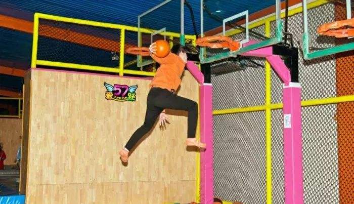 蹦床扣籃起源于國外的斯蘭博蹦床籃球,平時在籃球場上遇到扣籃的動作難度很大。如今,蹦床公園已使蹦床扣籃成為一場娛樂項目,配備了適合不同身高兒童和成年人的籃球架,深受顧客和運動員的喜愛。蹦床扣籃是一項集力量、技術、戰術、娛樂于一體的綜合性蹦床運動,極大地豐富了蹦床公園的模式游樂方法。蹦床扣籃運動帶來的沖擊很酷,感官體驗是其他娛樂設備無法比擬的,它不僅繼承了傳統籃球,而且突破了傳統的打球方式,在蹦床彈性方面,讓運動員輕松做出做各種扣籃動作,可以享受到游戲的活力和自由,在不斷突破中建立自信、滿足感的喜悅。