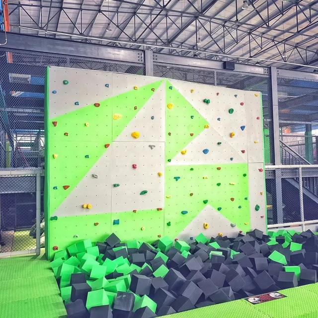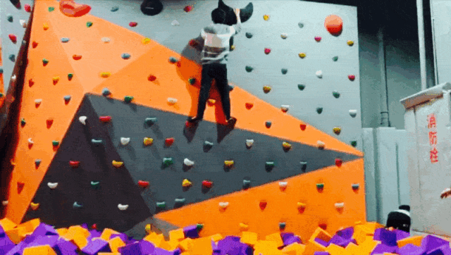 但是大家在蹦床公園進行攀巖項目時,完全不用擔心,因為腳下就是厚厚的海綿池,一不小心掉下去會被埋在海綿里,不會造成任何嚴重的磕碰傷。